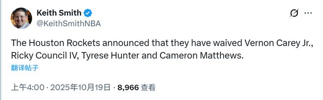 火箭官宣连裁4人!新赛季14+3阵容出炉杜兰特率新阵剑指总冠军