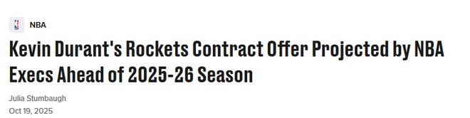 杜兰特至少降薪4000万美元高管建议火箭最多2年8000万与他续约