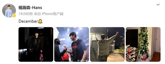 昨日,杨瀚森在社媒上晒出了四张照片,第一张是自己拿着粉色小书包,第二张是与前开拓者状元奥登的合影,第三张是高举双手的“加班仪式”,第四张是布置圣诞树的照片。新的一年即将到来,让我们祝福瀚森继续进步,早日真正立足NBA。 |