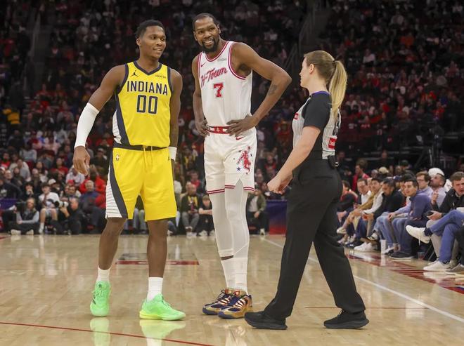 北京时间12月30日,NBA常规赛继续火热进行。火箭坐镇主场与步行者展开对决,此役,哈里伯顿、谢泼德、杰克逊伤停,卡莱尔的首发五虎是西亚卡姆、马瑟林、内姆哈德、赫夫与弗菲。尽管上赛季挺进了总决赛,但是印第安纳本赛季的表现并不理想。8连败的步行者排名联盟倒数第1,期待触底反弹。2连胜的火箭,则渴望继续提升排名。此役,申京、范弗利特继续缺战,乌度卡调整了阵容,杜兰特携手阿门汤普森、伊森、亚当斯、小贾巴里史密斯出任首发,芬尼史密斯、里德谢泼德、奥科吉仍然担任替补。两大超人气球队,在此役展开了激烈厮杀。 拒绝28分逆转!杜兰特30+6+5创NBA历史第3神迹,火箭3连胜反超湖人! 全场比赛回顾 首节开打,步行者状态慢热,杜兰特单打不中之后,随后迅速找到进攻节奏,他连续砍分,帮助火箭确立了12比3的开局。步行者连中远投追分,杜兰特携手奥科吉在外线发难,助力休斯顿稳住局面。首节打完,火箭以30比25领先,杜兰特单节砍下了13分。 杜兰特、马瑟林与裁判交流