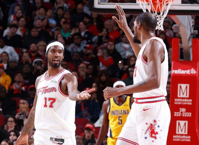 | 北京时间12月30日,NBA常规赛继续进行,火箭主场迎战步行者。火箭此前的战绩为19胜10负,进入12月份以来,表现非常惨淡,西部后五位轮流在火箭身上吃红利,火箭缺少控场+不善于打关键时刻的两大弱环暴露明显。不过最近两场比赛,火箭分别大胜湖人23分,大胜骑士17分,和快船一样,也是从湖人身上找到了自信。但有一点隐忧,本赛季申京和杜兰特同时在场时,球队净效率值只有+7.1,尚达不到球队平均水平(+8.8)。赛前乌度卡确认,申京因小腿伤势休战。而作为上赛季总决赛球队,步行者此前战绩仅为6胜26负。