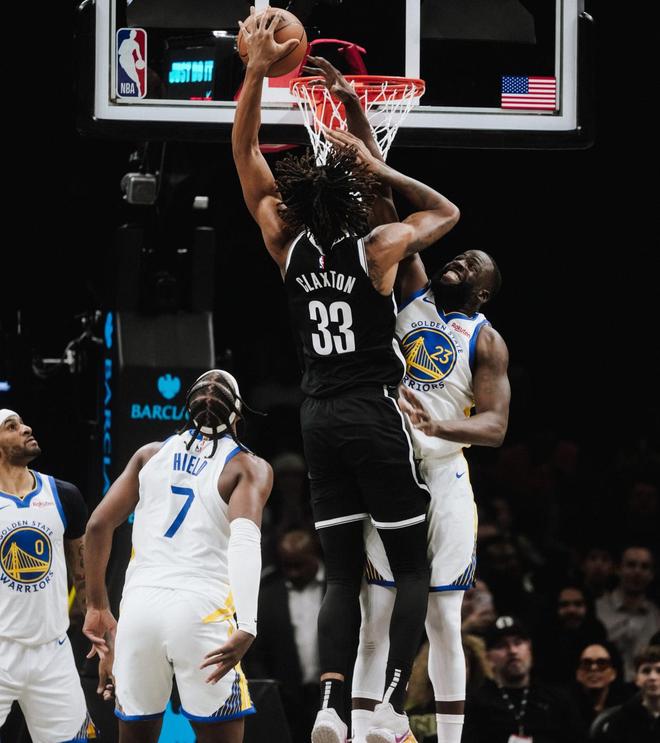 佩顿里突外投连得5分,库里单打得手,为勇士止血,克洛尼外线取分,小波特上篮打进,杰明轰进三分球,克拉克斯顿抛投得分,篮网打出了10比0的攻势,将分差扩大至13分。戴维斯扣篮,梅尔顿抢断后上篮得分,布鲁克林请求暂停。波杰姆斯基跳投得分,篮网挑战判罚成功。托马斯抛投得分,巴特勒2罚全中,戴维斯封盖托马斯的扣篮,巴特勒冲击篮下得手。戴维斯2罚1中,勇士连续抢下前场篮板,巴特勒2罚全中。夏普的压哨远投被梅尔顿封盖,首节打完,勇士以28比30落后,小波特单节10分。 次节较量,希尔德上篮得分,夏普2罚1中,库里罚进2球,特拉奥雷轰进三分球,格林上篮得分,托马斯高位跳投得手还以颜色。库里与托马斯对射远投,科尔请求暂停。佩顿、克拉克斯顿各有暴扣,库里继续外线发难,佩顿2罚1中。克洛尼抢断后上篮得分,戴维斯回敬扣篮,波特暴扣,希尔德上篮得分。 库里被包夹