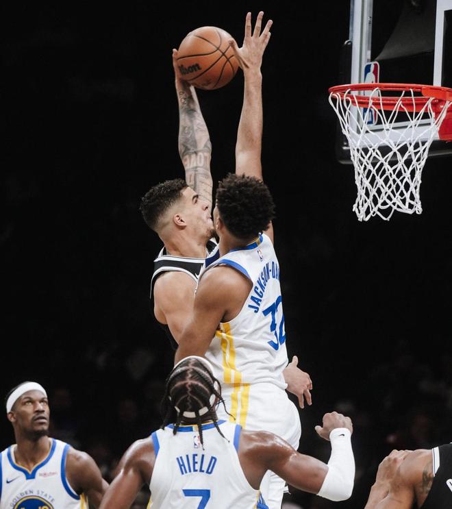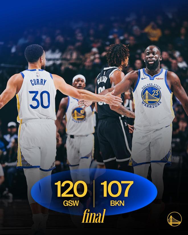 波特3罚2中,克拉克斯顿连续2次完成补扣,科尔请求暂停,曼恩2罚全中,篮网回敬8比0的攻势。库里命中2+1为勇士打破得分荒,杰明回敬三分球,格林2罚全中,梅尔顿大帽杰明的远投。巴特勒助攻梅尔顿上篮得分,理查德抢断后完成暴扣,勇士连得6分锁定胜局。科尔挑战判罚失败,克拉克斯顿2罚1中。库里2罚1中,波特上空篮不进,理查德命中2+1,比赛时间走完。最终,勇士以120比107力克对手。 两队数据 篮网队,杰明17中7,三分球14中7近看23分3板3助、克拉克斯顿9中7砍下了15分9板4助3断3帽,在攻防两端存在感很强。托马斯12中5得到13分2助、克洛尼8中3得到11分5板2助2断、特拉奥雷9分、曼恩4分2板4助、夏普3分5板、鲍威尔2分、沃尔夫1板2助。 勇士力擒篮网