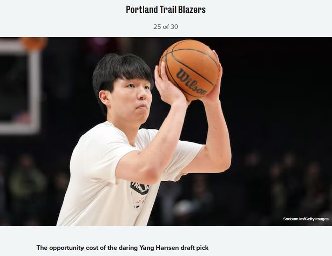 | 北京时间12月31日,在2025年的最后一天,知名美媒Bleacher Report点评了30支NBA球队2025年最后悔的决策。其中,他们认为开拓者最后悔的决策是冒险在首轮选中杨瀚森。具体点评如下——