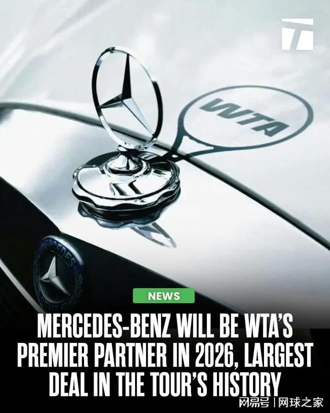 从2026年2月的阿布扎比站开始,梅赛德斯-奔驰的标志性三叉星徽将闪耀在全球近30站WTA赛事中,成为赛场内外一道亮丽的风景线。