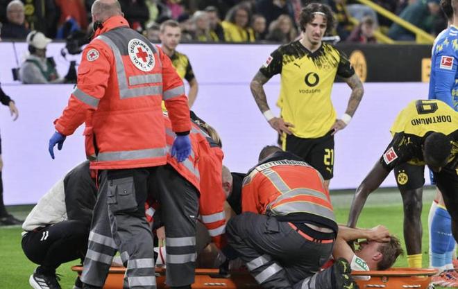 | 北京时间10月26日,德甲第8轮,多特蒙德1-0科隆。在比赛中,科隆球员许伯斯在与多特球员吉拉西的对抗后痛苦倒地,紧抓右膝。29岁的他最终在队友和医护的陪同下,泪流满面地被担架抬出球场。