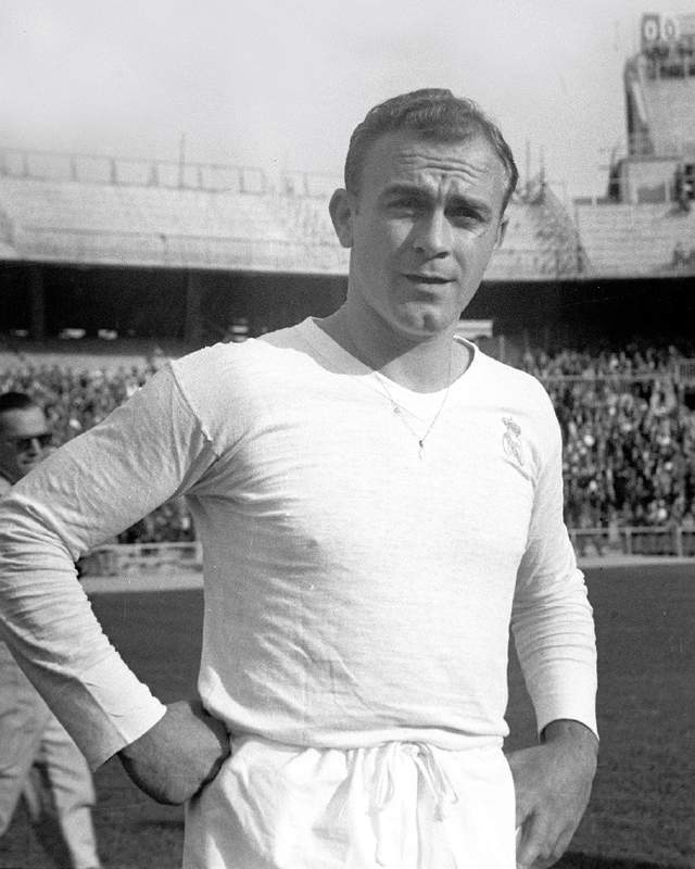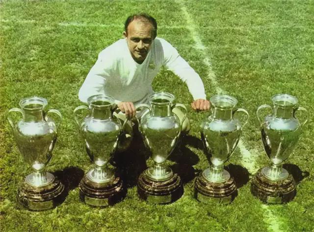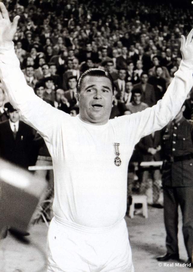 当年的皇马,阵中拥有迪·斯蒂法诺、普斯卡什、亨托、马基托斯、里亚尔等传奇球星。星味儿相比后来的“银河战舰”,C罗时期,也毫不逊色。 头号球星,绰号“金箭头”的迪·斯蒂法诺,效力皇马11年,8次赢得西甲冠军,5次西甲金靴,5次欧冠决赛都有进球,2次荣膺金球奖。如果换个时代,迪·斯蒂法诺完全可以跟C罗、梅西比金球奖以及各种进球数据。 遗憾的是,迪·斯蒂法诺职业生涯44年,先代表阿根廷,后代表西班牙,竟然一次世界杯都没踢过,代表阿根廷时,阿根廷退赛,帮助西班牙打进了世界杯,自己因伤缺席。要不然,他的成就将令球王贝利、马拉多纳都难以企及。 比迪·斯蒂法诺小一岁的匈牙利传奇前锋普斯卡什,绰号“飞奔的少校”,他领衔的匈牙利在1950年代初期天下无敌,仅输掉了1954年世界杯决赛。1958年夏天,普斯卡什加盟皇马,1960年欧冠决赛打进四球,帮助皇马7-3大胜法兰克福夺冠是其成名作。