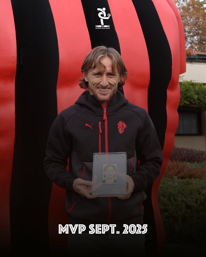 | 官方消息,米兰中场莫德里奇领取了意大利球员协会意甲9月最佳球员奖。