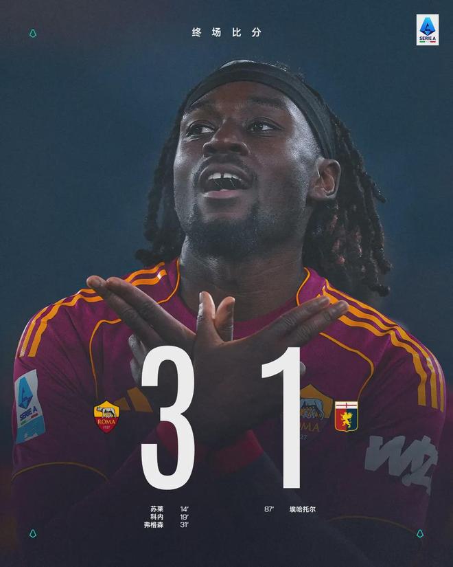 比赛结束后,进球功臣苏莱没有先与队友庆祝,而是第一时间走向德罗西,两人紧紧相拥。这一幕被镜头捕捉,成为本轮意甲最温情的画面。足球世界里,有些情感超越了胜负与阵营。 德罗西在赛后新闻发布会上坦言对球队表现不满,但这位罗马传奇的执教生涯才刚刚开始。他正在热那亚证明自己的执教能力,而他与罗马的故事,以这种特殊的方式延续着。 对于罗马球迷而言,德罗西永远是“我们的孩子”。即便他站在对手的教练席,那份深厚的情感联结从未改变。这种复杂而真挚的情感,正是足球最动人的部分。 04 挑战与机遇 尽管以一场胜利为2025年完美收官,但罗马面临的挑战依然严峻。 虽然目前排名第四,仅落后榜首国际米兰3分,但球队在对阵强队时的表现仍是软肋。本赛季,罗马对阵国际米兰、AC米兰、那不勒斯和尤文图斯四大强队时遭遇全败。 有分析指出,罗马之所以能保持在前四位置,除了对阵中下游球队表现稳定外,也与榜首几支强队因多线作战而状态起伏有关。真正的考验,往往在强强对话中到来。 不过,主帅加斯佩里尼率领的这支球队已经展现了强大的凝聚力和战斗力。罗马在2025年实现了联赛主场四连胜,上一次做到这一成就还是在穆里尼奥执教时期。