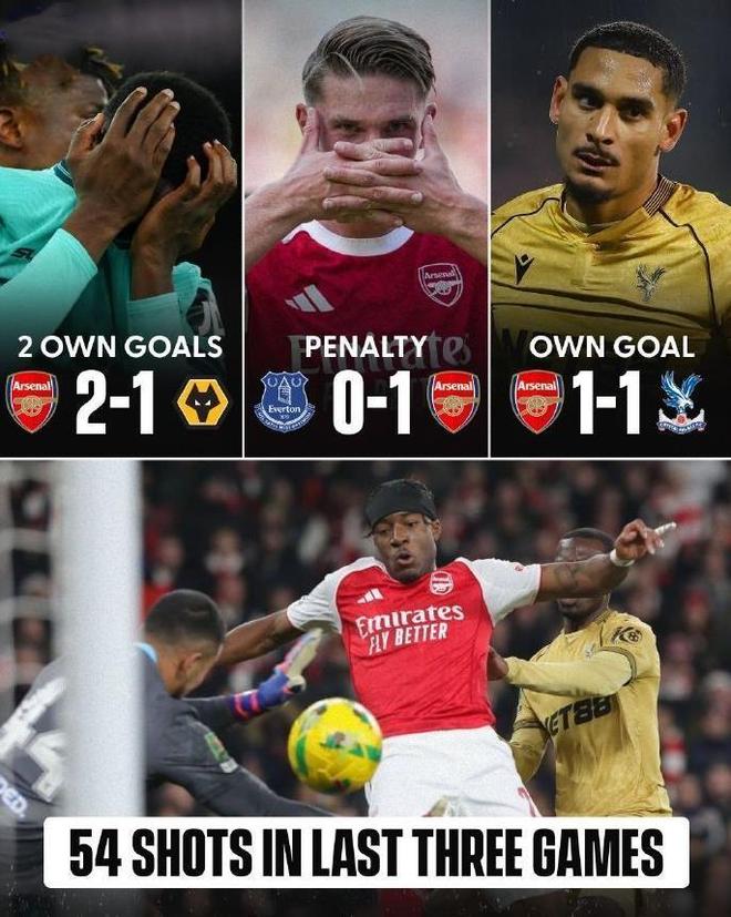 乌龙依赖症!阿森纳54脚射门0运动战进球,争冠之路已经敲响警钟