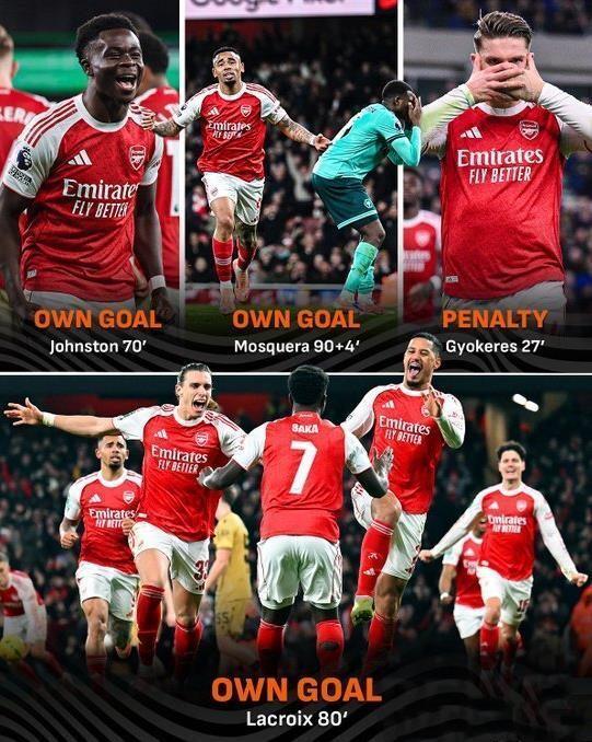 球队近期的进球全部来自于对手的失误或点球,对阵狼队的两粒进球均为乌龙球,对阵埃弗顿的制胜球是点球,而对阵水晶宫的常规时间进球,也是对手的乌龙。
