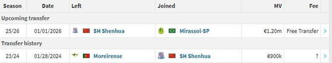 | 德转更新,上海申花外援安德烈-路易斯将在合同到期后自由身加盟巴甲米拉索尔。
