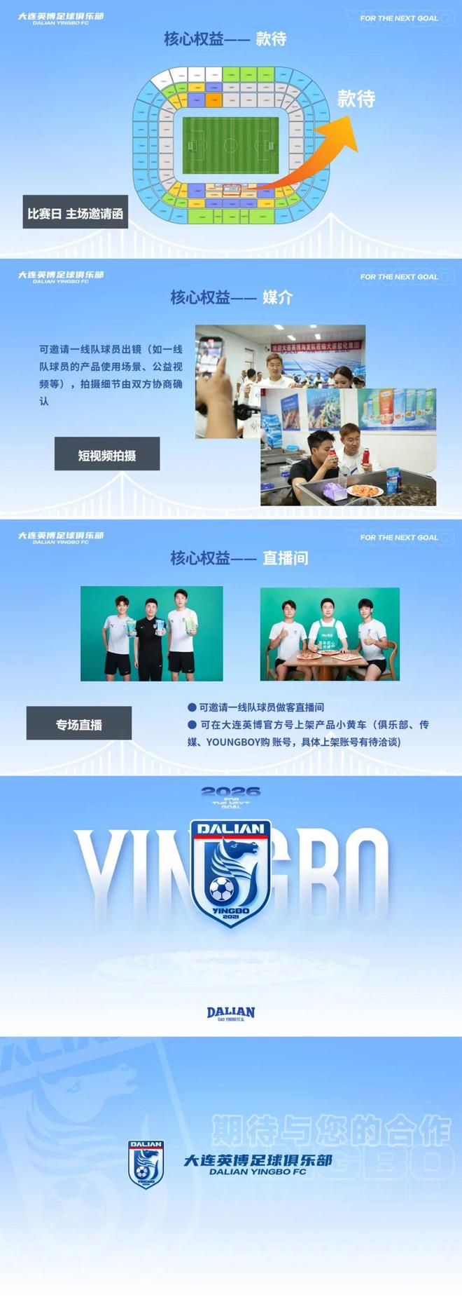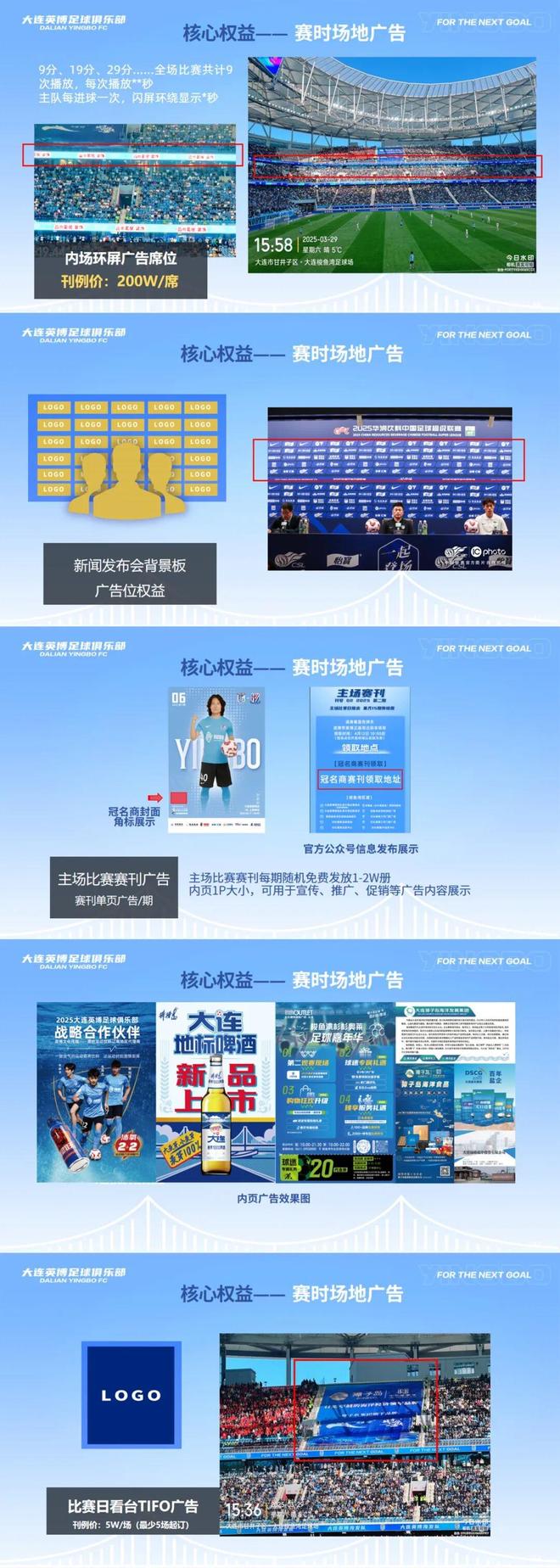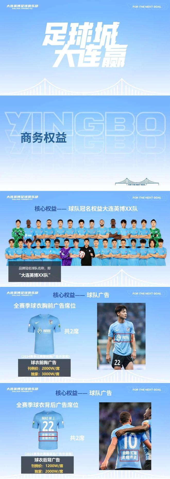 | 大连英博发布2026中超招商合作手册,现面向市场公开招商,涵盖球队冠名权、球衣胸前广告、球衣背后广告等权益。